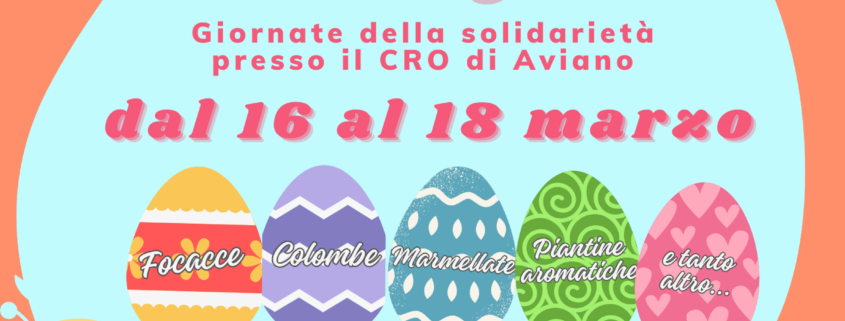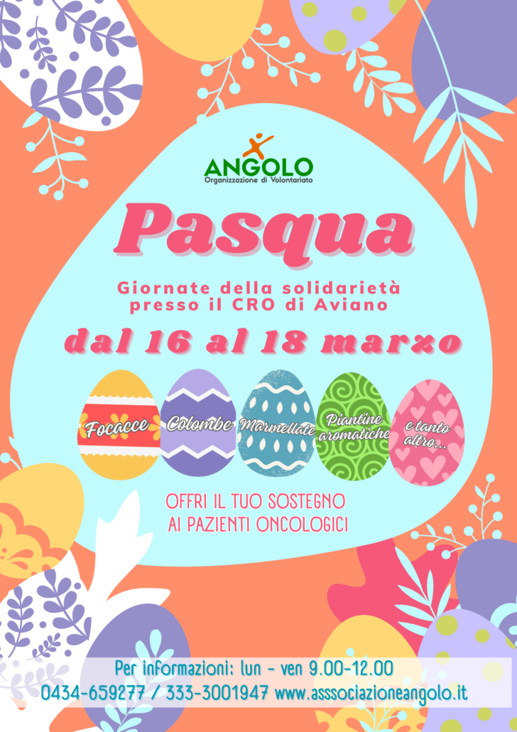 Anche quest’anno ANGOLO organizza per il periodo pasquale le “Giornate della solidarietà” il 16, 17 e 18 marzo presso l’atrio del CRO di Aviano.