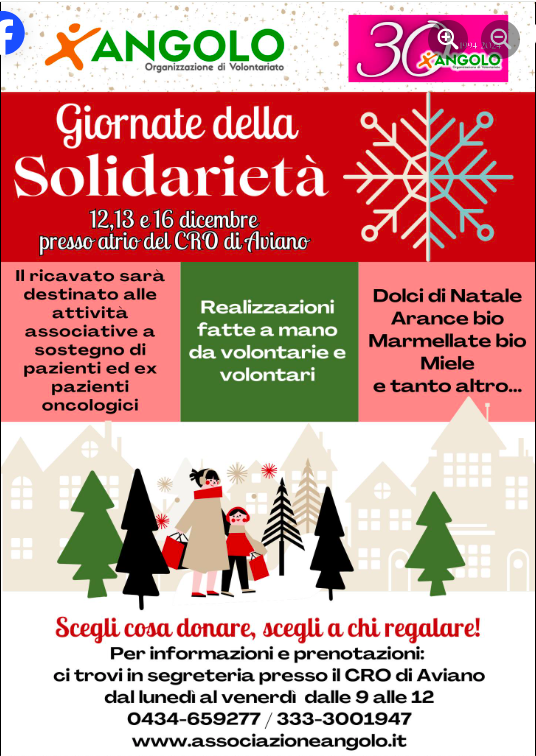 Passate a trovarci presso l’atrio principale del CRO il 12, 13 e 16 dicembre 2024 oppure chiamate in segreteria per maggiori informazioni e per prenotazioni. Troverete dolci artigianali, frutta bio, marmellate bio, tanti oggetti fatti a mano dai nostri volontari e molto altro!!!