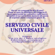 Servizio Civile una  Risorsa per le Associazioni  è il titolo della nuova iniziativa informativa del CTA Livenza, Coordinamento Territoriale delle Associazioni dell’area del Livenza che afferiscono al CSV fra cui ANGOLO. Il servizio civile per ANGOLO – che ne usufruisce grazie al progetto Riabilitazione Oncologica di  FAVO, alla cui rete associativa ANGOLO aderisce, è una risorsa fondamentale