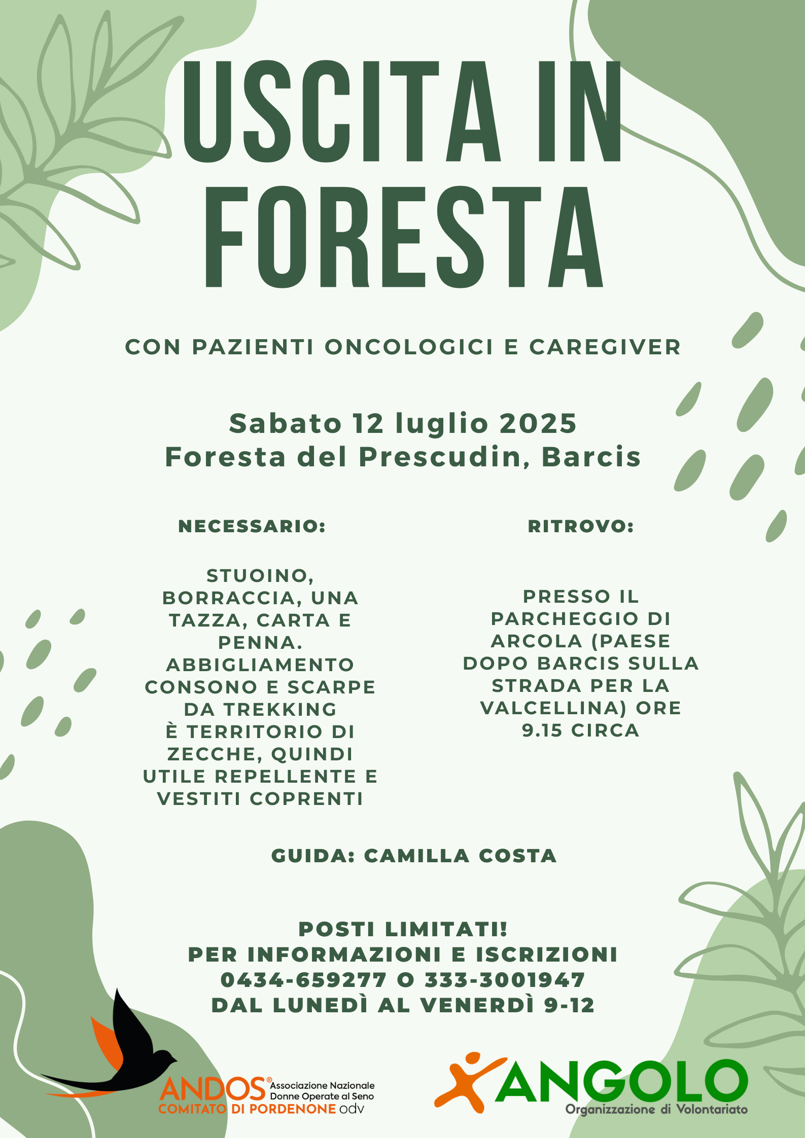 L’iscrizione è obbligatoria contattando la segreteria di ANGOLO OdV dal lunedì al venerdì dalle 9 alle 12 ai numeri 0434659277 o 3333001947.